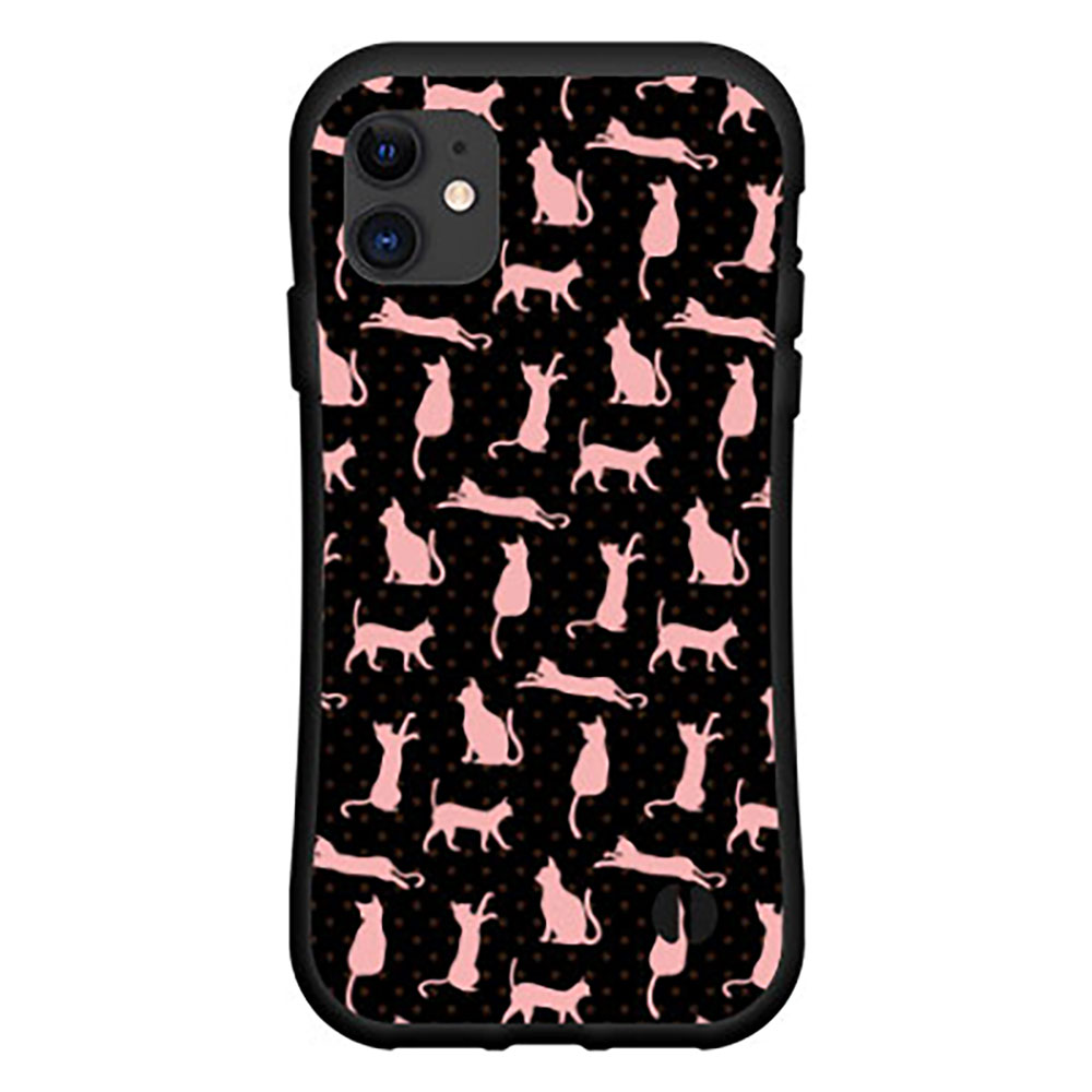 iPhone 12アイフォン トゥエルブdocomo au SoftBank落としても割れにくい驚きの衝撃吸収力豊富なオリジナルデザイン耐衝撃 ハイブリッドケース猫柄(ブラック×ピンク)