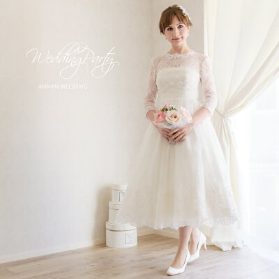 ウエディングドレス ミモレ アンクル丈 二次会 ウェディングドレス 花嫁ドレス ウエディングドレス ドレス ミモレ 花嫁 ドレス 花嫁ドレス ウエディングドレス ミニ 二次会 花嫁ドレスアンクル丈 ウェディング【オードリーアンクル】