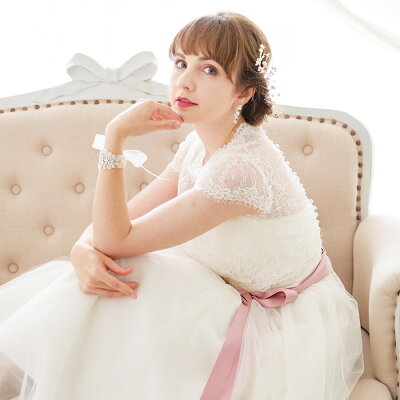 【半袖レースボレロがセット】【フィット感編み上げドレス】ウエディングドレス ミモレ   二次会 花嫁ドレス ミモレ丈 ウェディングミディアム  アンクル丈 ミモレ丈 ウェディングドレス