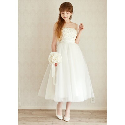 【フィット&フレアのミモレ】【Chayさんご試着】ウエディングドレス ミモレ 二次会 花嫁ドレス 二次会ドレス ミモレ ウエディングドレス ミニミモレ丈 ウェディングミディアム アンクル丈 ミモレ丈 ウェディングドレス