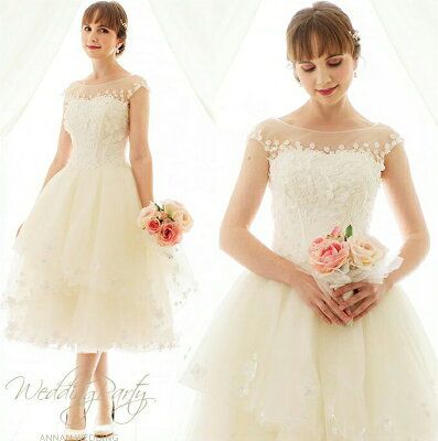 【大人気のミモレ丈ドレス】【主役ロマンティックドレス】ウエディングドレス ミモレ 二次会 花嫁ドレス 二次会ドレス ミモレ  ミモレ丈 ウェディングミディアム アンクル丈 ミモレ丈 ウェディングドレス