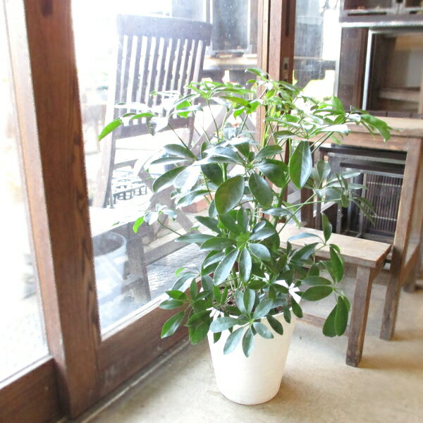 シェフレラ ホンコンカポック 7号鉢サイズ 白色 セラアート鉢 ホワイト 鉢植え 香港カポック 送料無料 薫る花 観葉植物 おしゃれ インテリアグリーン アジアンテイスト 大型 中型