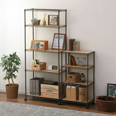 お部屋の雰囲気に合わせて選べる「リバーシブルウッドボート付き」マットカラーのメタルラック。