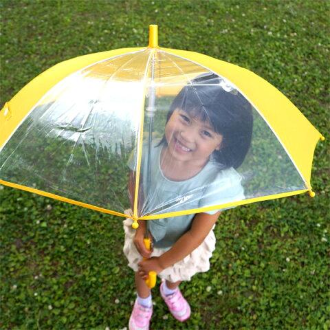 ※発送は通常より遅くなりますのでご了承ください 傘生地8コマ中、2コマが透明の窓付き子供用雨傘。