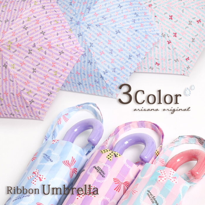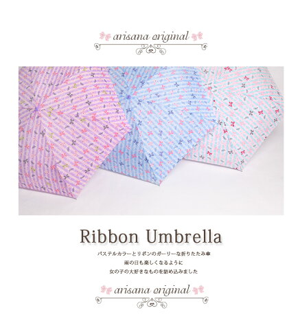 [rain/recommend][coord/12ah05-3][coord/18ah06-2][ss10off_rain][ribbonstripe_tag]もっと見る もっと見る もっと見る 【アリサナオリジナル】リボン柄 折りたたみ傘ワンサイズ 開けばしっかり大きい直径96cm/指を挟まない安全設計/3段/押すタイプ(手動) アリサナオリジナルのパステルカラー。